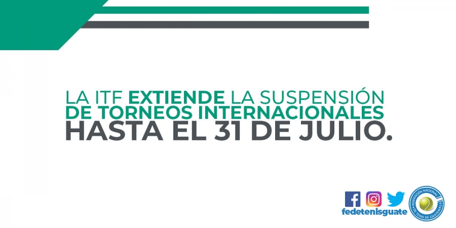 La Federación Internacional de Tenis ha extendido la suspensión de todos los torneos de la ITF hasta el 31 de julio de 2020, debido a la actual pandemia de COVID-19.