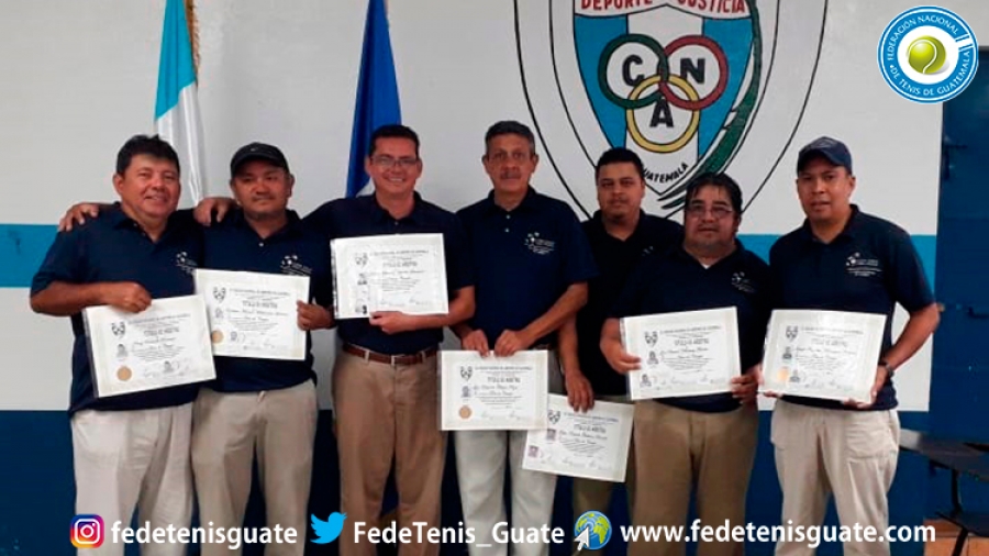 El pasado 21 de agosto en los salones del Colegio Nacional de Árbitros, CNA ubicados en la ciudad de los deportes zona 5, se realizó la juramentación oficial de la primer promoción de árbitros de la Federación de tenis de campo conformado por Hugo Beltrán, Luis Villegas, Francisco Marroquín, Fredy Bamaca, Cristian Maldonado, Otoniel Velasquez y Oswaldo Yuman quienes oficialmente son egresados del Colegio Nacional de Árbitros de Guatemala.