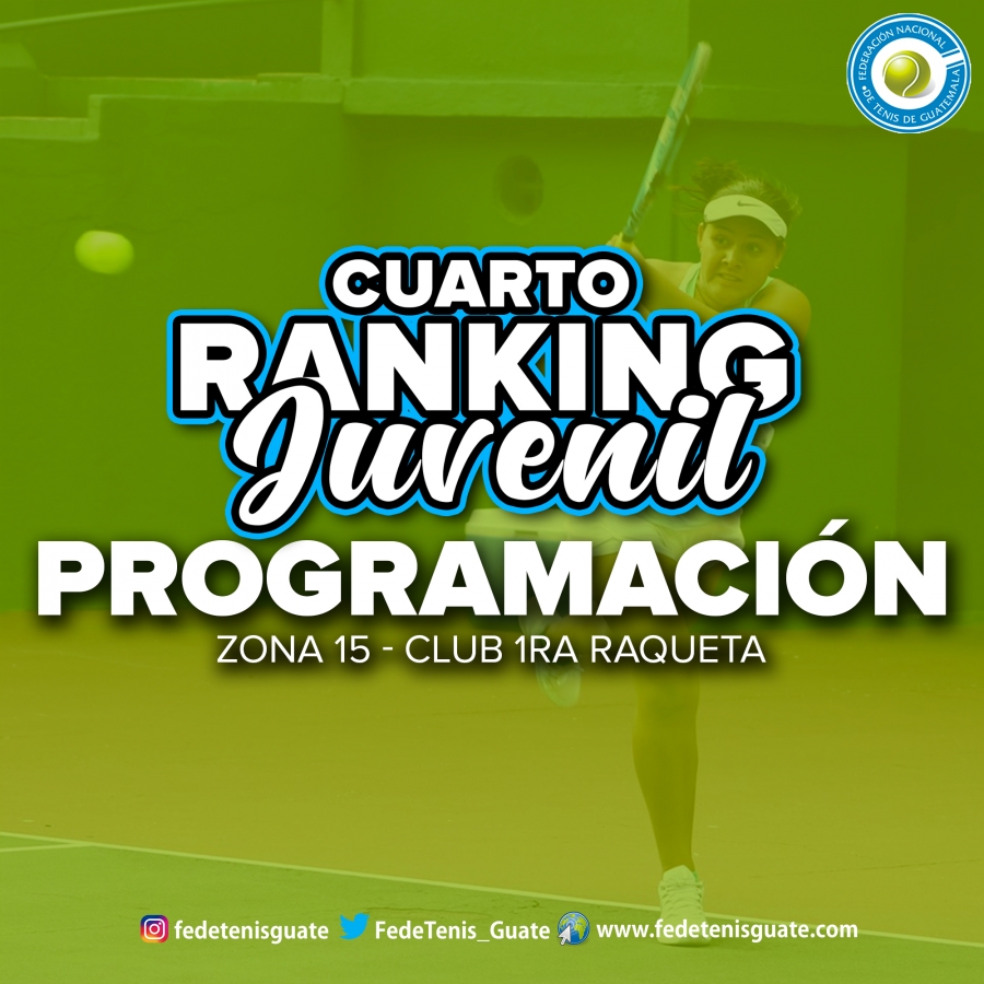 Les compartimos la programación del 4to Ranking Nacional Juvenil sede zona 15 y Club Primera Raqueta, día Lunes 2 de septiembre.