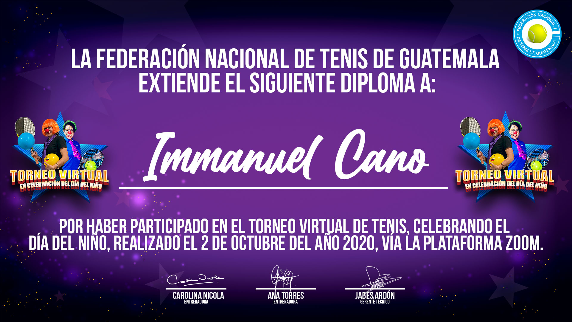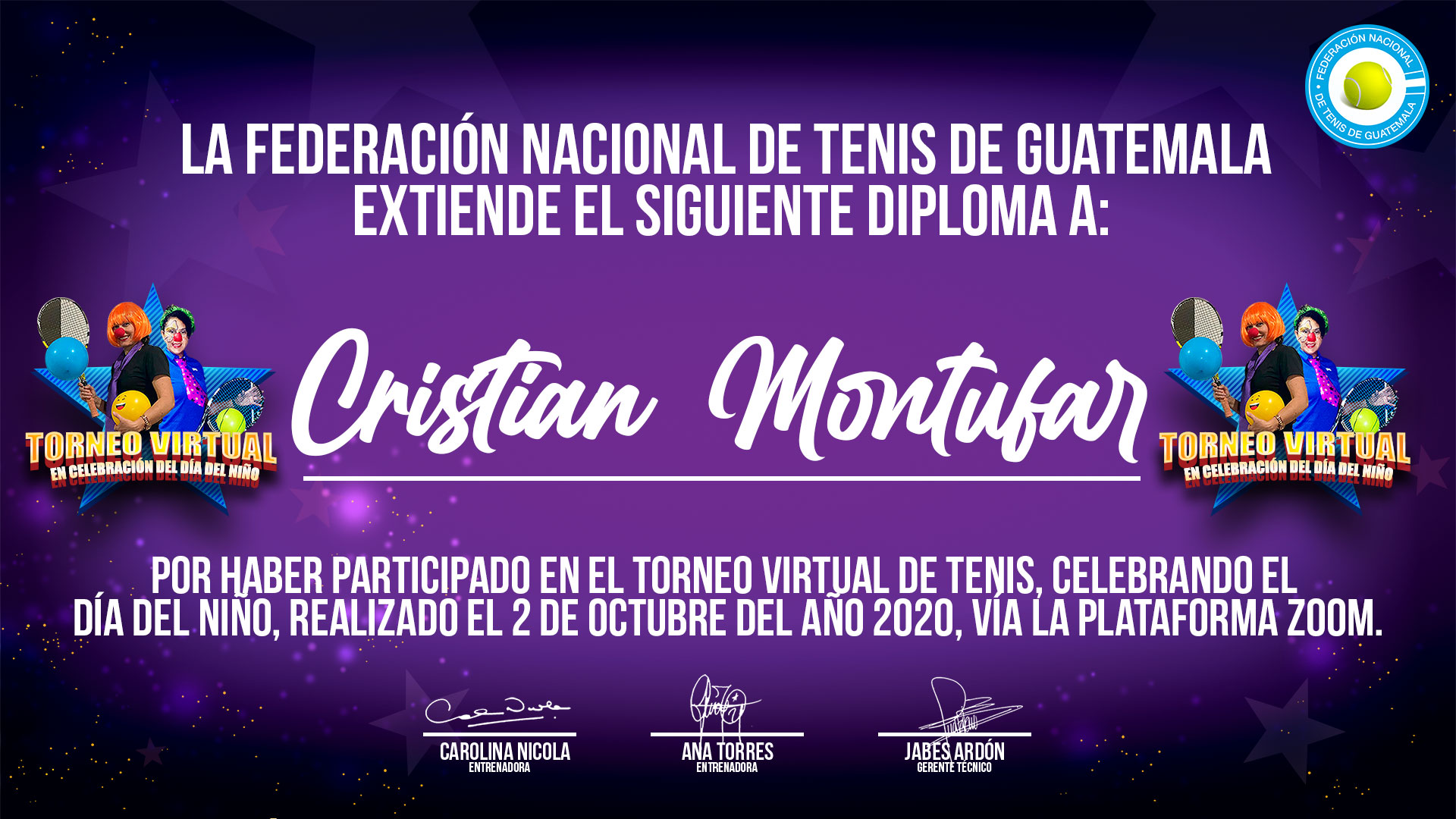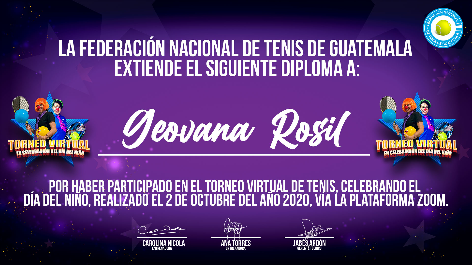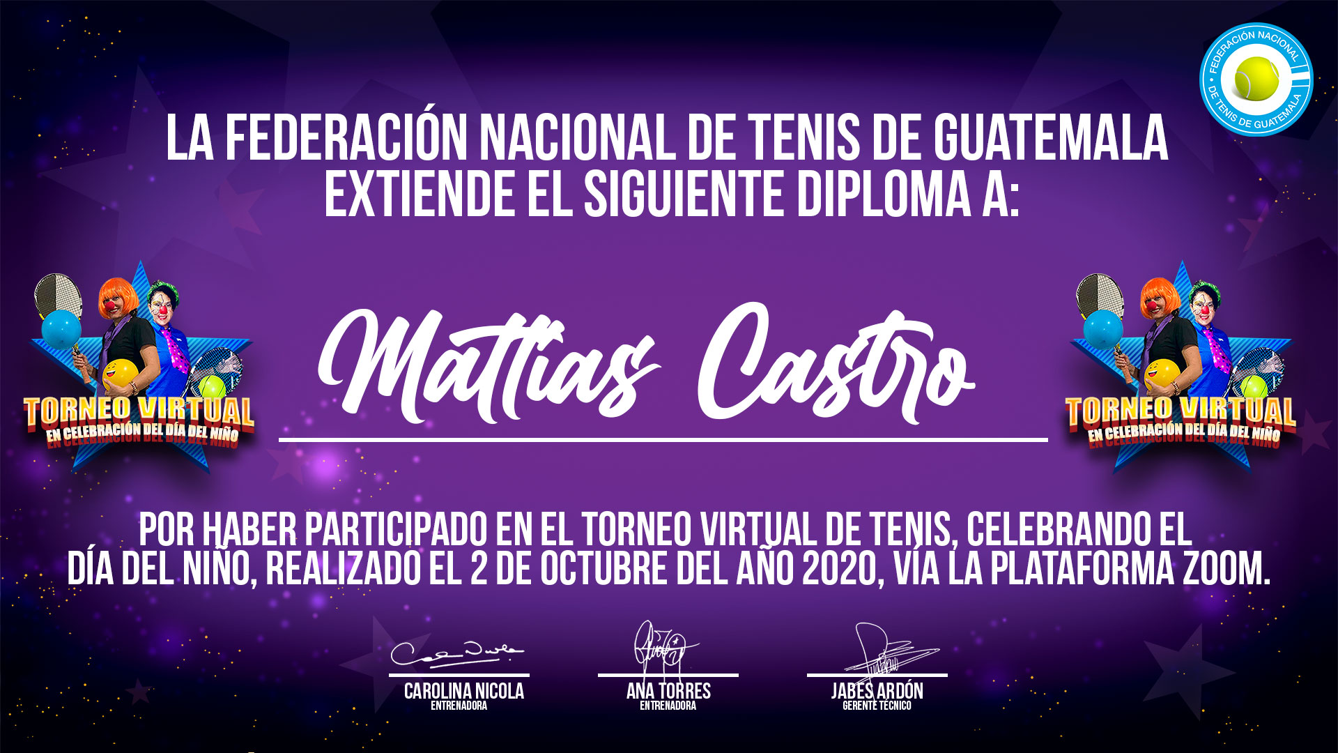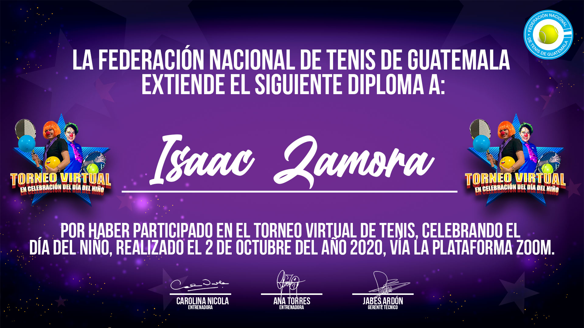 Diplomas de participación - Torneo Virtual